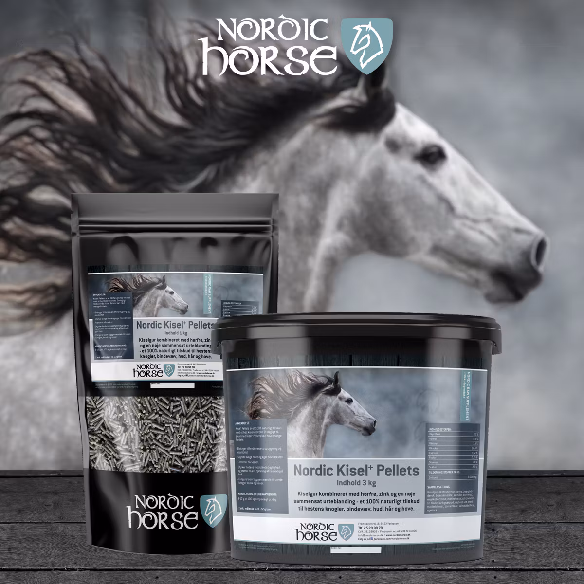 Kiselgur kombinerad med linfrön och en noggrant sammansatt örtblandning - ett 100 % naturligt tillskott för hästens ben, bindväv, hud, päls och hovar.